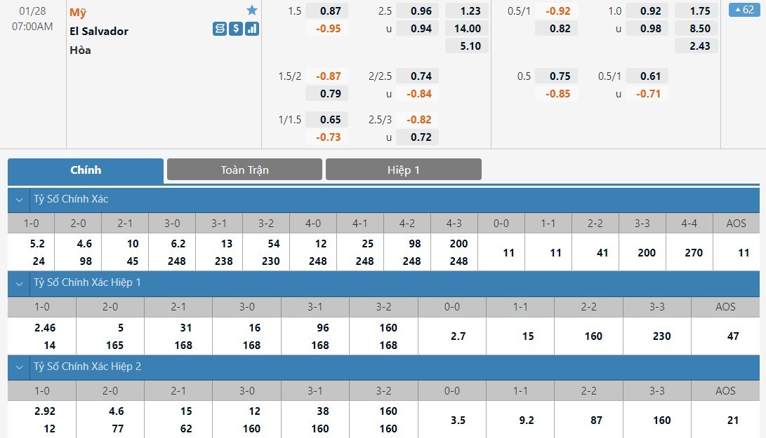 Soi kèo tài xỉu, kèo tỷ số Mỹ vs El Salvador