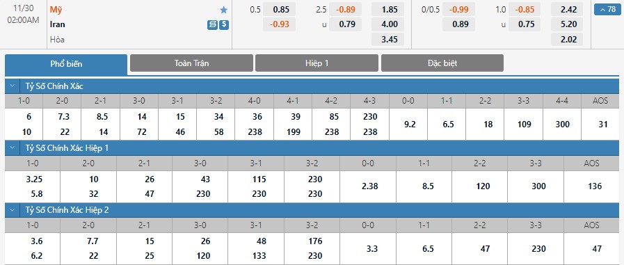 Soi kèo tài xỉu, kèo tỷ số Mỹ vs Iran