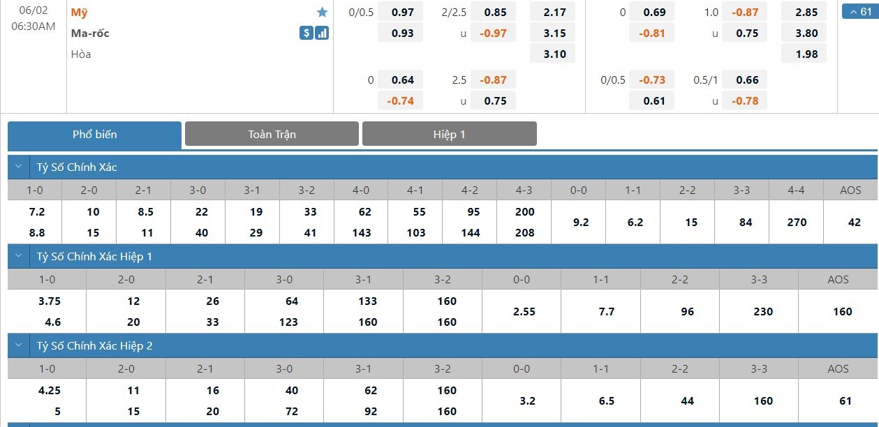 Soi kèo tài xỉu, kèo tỷ số Mỹ vs Morocco