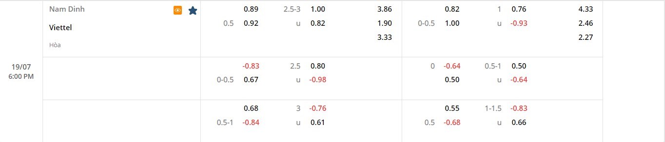 Phải làm khách ở trận này, Viettel sẽ không được đánh giá cao hơn Nam Định quá nhiều và tỷ lệ cược của 2 đội bóng ở kèo đấu này sẽ không có sự chênh lệch quá lớn. Lúc này có thể nói Nam Định đang chìm trong khủng hoảng và họ đang phải đối mặt với quá nhiều những khó khăn. Trước một Viettel được đánh giá rất cao Nam Định nhiều khả năng sẽ lại phải nhận thêm một thất bại.