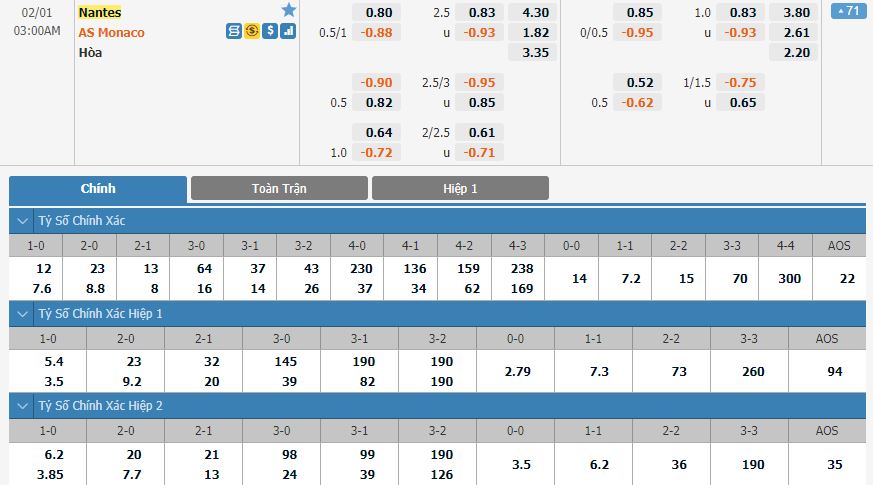 Soi kèo châu Á Nantes vs Monaco