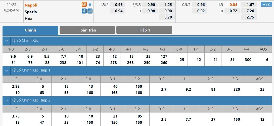 Soi kèo châu Á Napoli vs Spezia