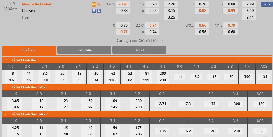 Soi kèo châu Á Newcastle United vs Chelsea