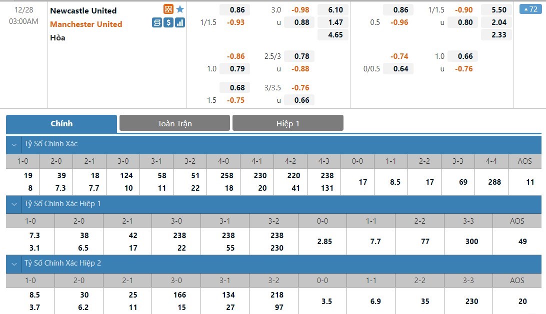 Soi kèo tổng quát Newcastle United vs Manchester United
