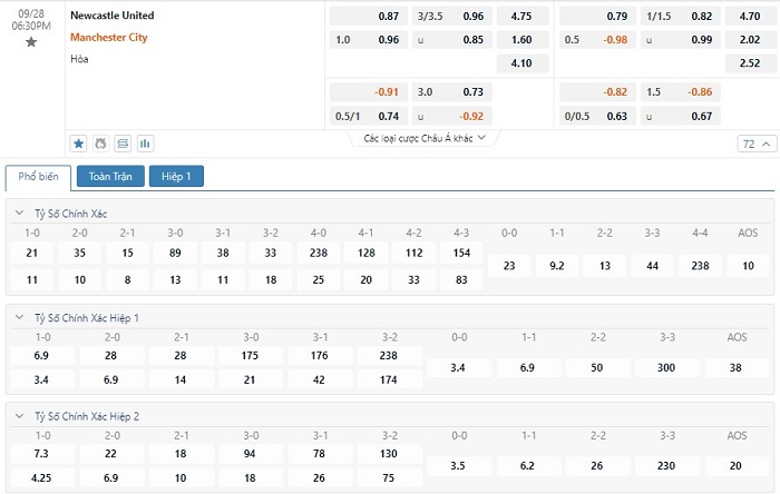 Newcastle dù sắm vai chủ nhà nhưng họ vẫn phải chấp nhận việc bị nhà cái xếp ở thế chiếu dưới trong trận đấu này. Với mốc tỷ lệ chấp -1 trái nhà cái đưa ra thì có thể thấy rằng đội ngũ chuyên môn vẫn đặt niềm tin lớn vào kịch bản một chiến thắng cách biệt dành cho đội khách. Cũng không quá ngạc nhiên với nhận định trên bởi lẽ Manchester City đang có chuỗi 6 chiến thắng liên tiếp trên sân khách. Xét rộng hơn, nửa xanh thành Manchester chỉ thua 1 trận trong 20 trận sân khách gần đây.