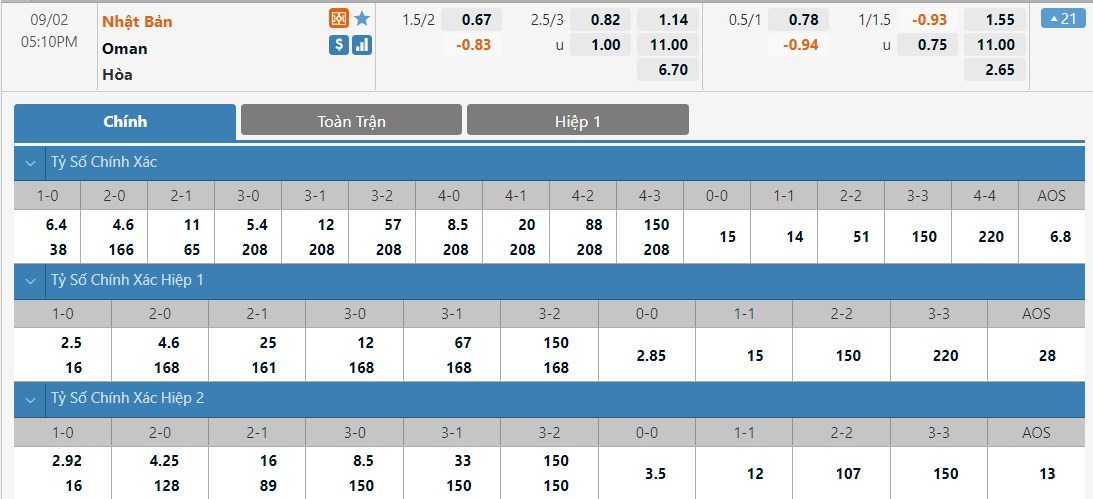 Soi kèo tài xỉu, kèo tỷ số Nhật Bản vs Oman