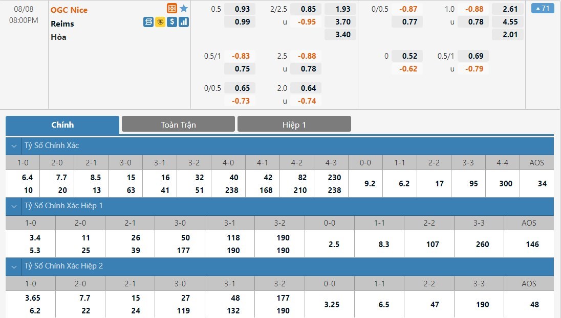 Dự đoán kèo tỷ số hiệp 1: Nice 2-0 Stade Reims