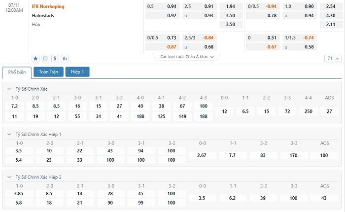 Soi kèo tài xỉu, kèo tỷ số Norrkoping vs Halmstad