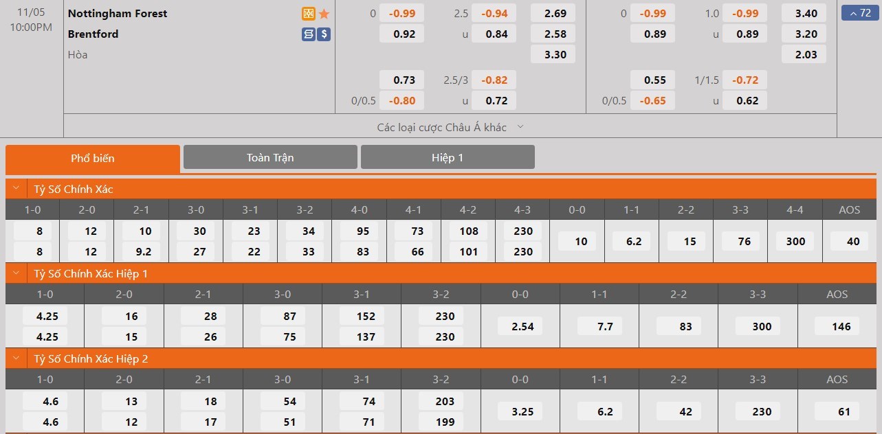 Soi kèo châu Á Nottingham Forest vs Brentford