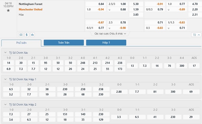 Soi kèo tài xỉu, kèo tỷ số Nottingham vs Manchester United