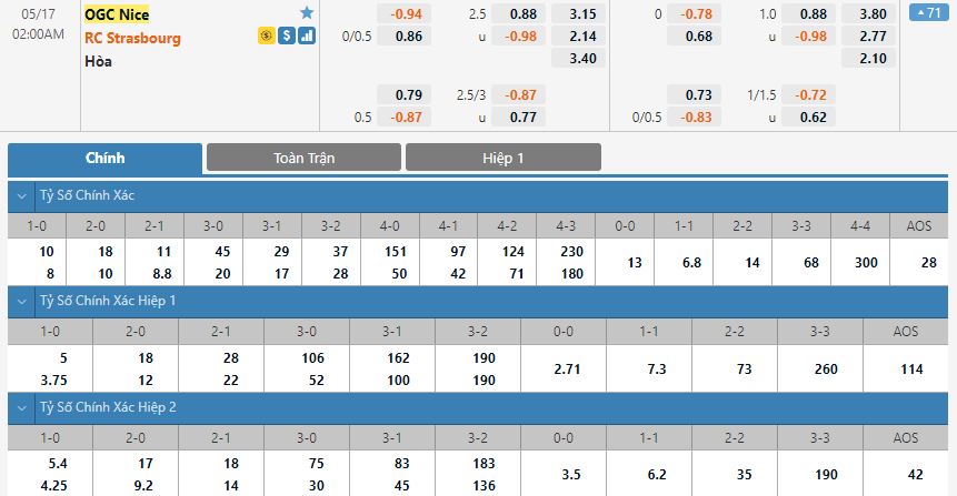 Soi kèo OGC Nice vs Strasbourg, 02h00, 17/05/2021
