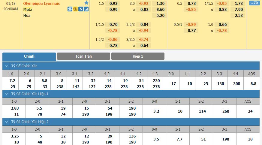Soi kèo châu Á Olympique Lyonnais vs Metz