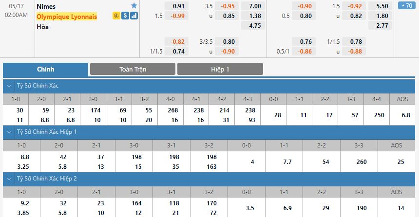 Soi kèo châu Á Olympique Nimes vs Olympique Lyon