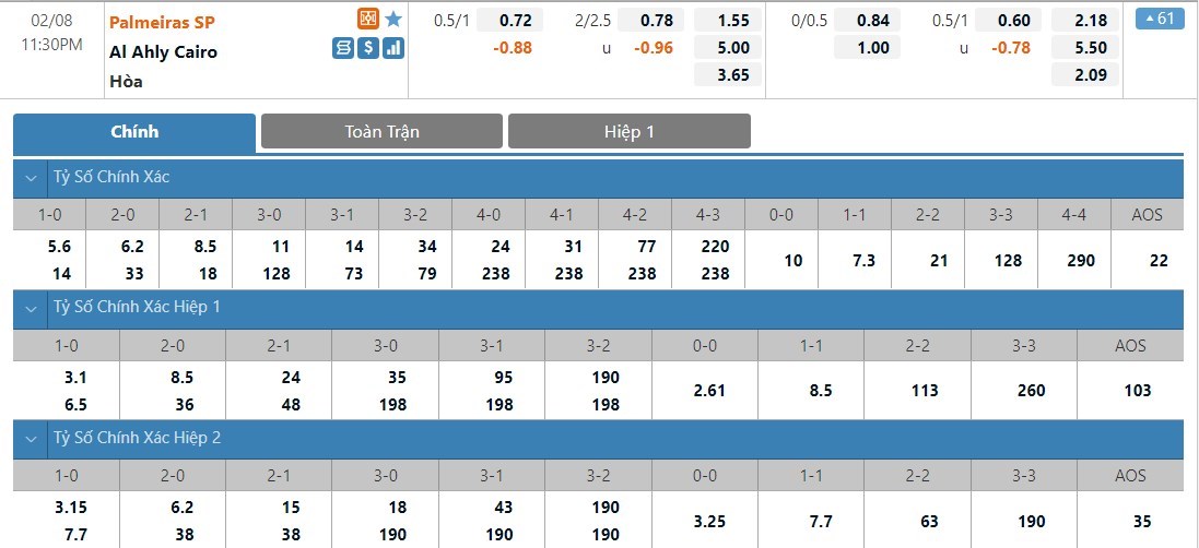 Palmeiras vẫn sẽ được đánh giá cao hơn Al Ahly không ít ở trận này. Al Ahly không phải một đội bóng yếu và xét về trình độ, họ đang không thua kém Palmeiras quá nhiều. Sẽ là một trận đấu mà Al Ahly được dự đoán sẽ không quá lép vế trước Palmeiras và ô cược hòa sẽ là lựa chọn có thể tin tưởng ở kèo đấu này.