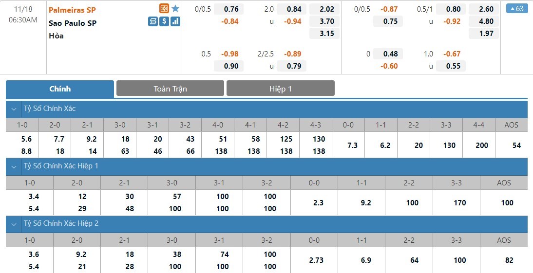 Soi kèo tổng quát Palmeiras vs Sao Paulo