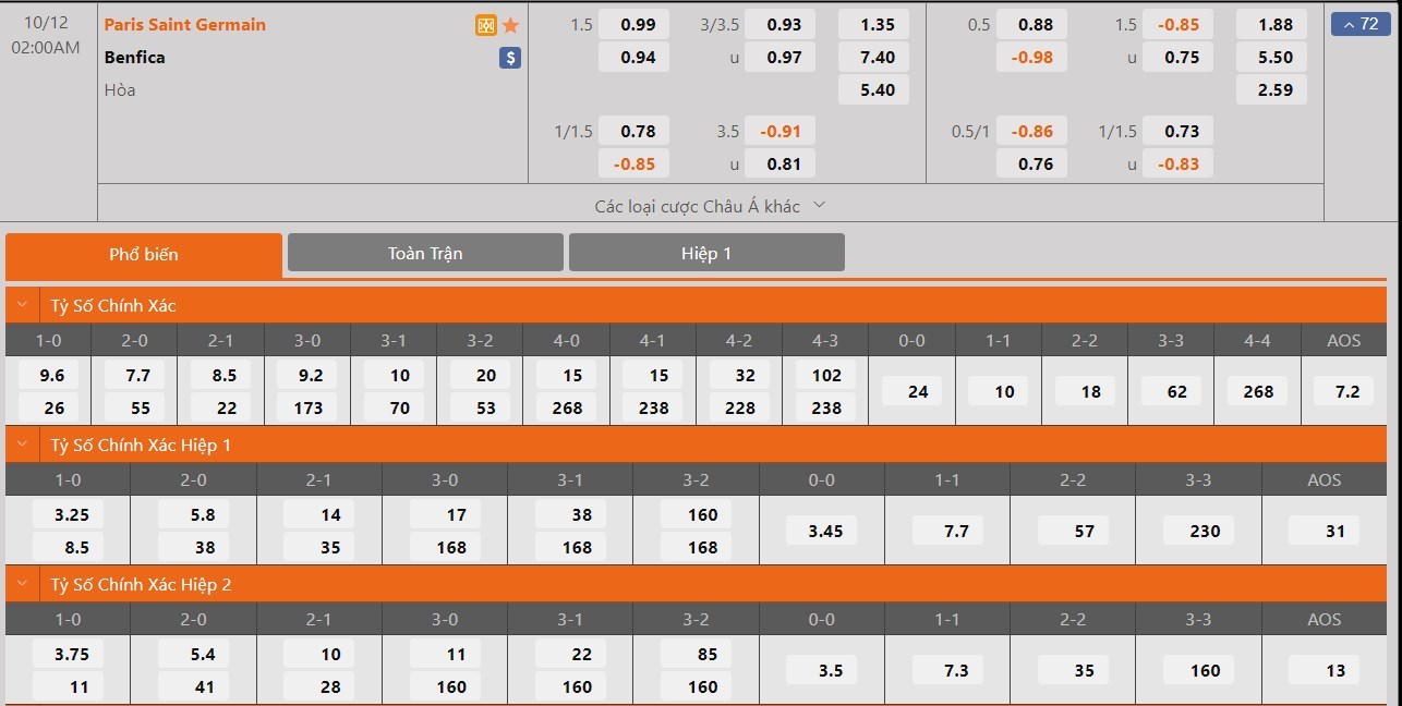 Soi kèo châu Á Paris Saint Germain vs Benfica