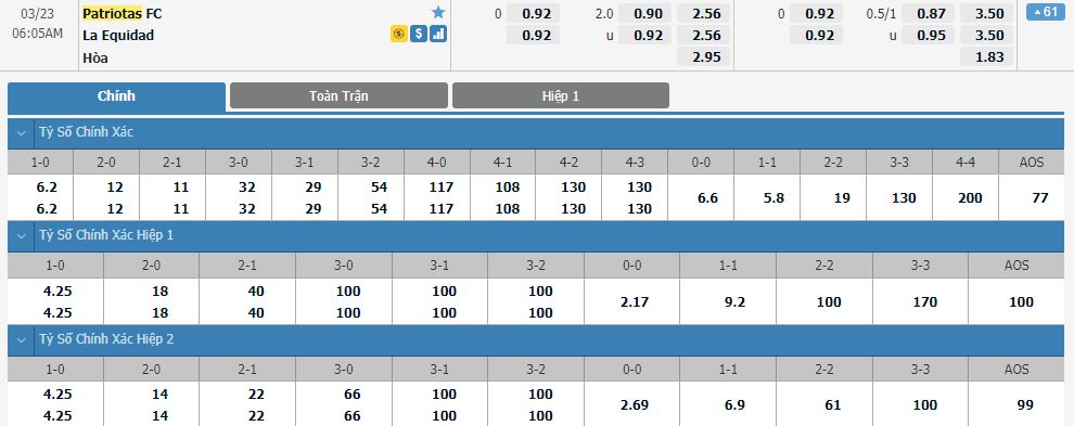 Soi kèo châu Á Patriotas Boyacá vs La Equidad