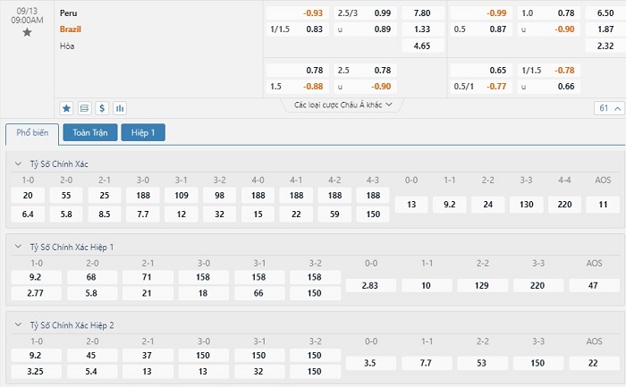 Soi kèo tài xỉu, kèo tỷ số Peru vs Brazil