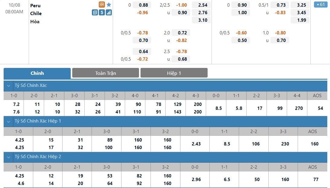 Soi kèo tài xỉu, kèo tỷ số Peru vs Chile