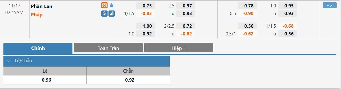 Kèo châu Á toàn trận: Pháp -1 1/4 (FT)