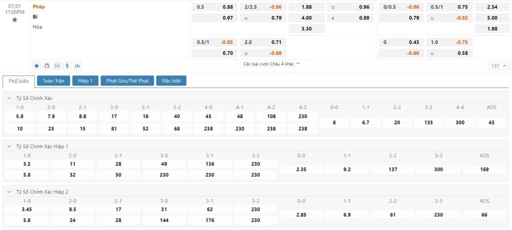 Soi kèo tài xỉu, kèo tỷ số Pháp vs Bỉ