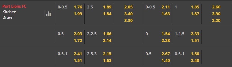 Tỷ lệ cược của 2 đội bóng ở kèo đấu này sẽ không có sự chênh lệch quá lớn. Kitchee sẽ được đánh giá cao hơn đôi chút so với Port tuy nhiên đội bóng Hong Kong sẽ không dễ thắng ở trận này. Port đang có phong độ cao và trước một đối thủ không quá vượt trội so với mình về trình độ, Port hoàn toàn có thể nghĩ tới một trận hòa.
