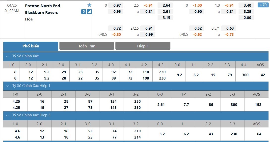 Soi kèo tài xỉu, kèo tỷ số Preston vs Blackburn