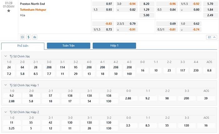Soi kèo tài xỉu, kèo tỷ số Preston vs Tottenham