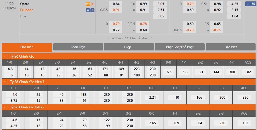 Dự đoán kèo tỷ số hiệp 1: Qatar 0-1 Ecuador