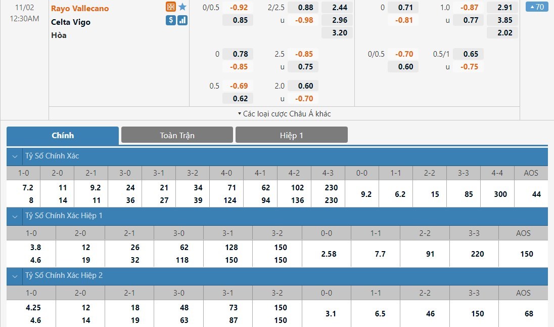 Soi kèo châu Á Rayo Vallecano vs Celta Vigo