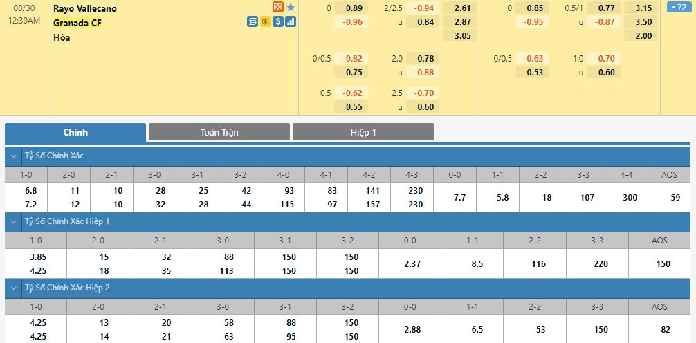 Soi kèo châu Á Rayo Vallecano vs Granada CF