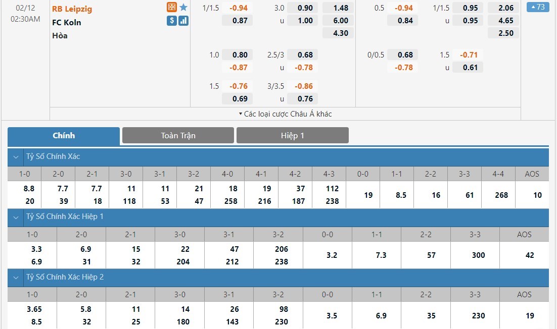 Soi kèo châu Á RB Leipzig vs Koln