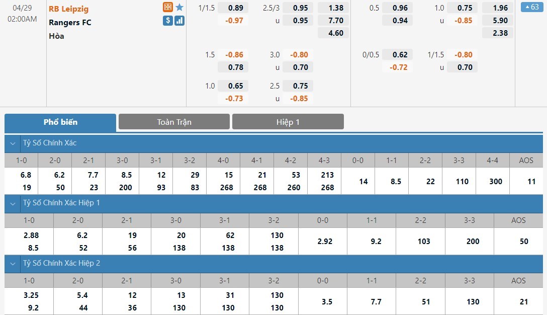 RB Leipzig lúc này đang tấn công tốt. Trên sân nhà và trước một đối thủ bị đánh giá yếu hơn khá nhiều, RB Leipzig sẽ có được không ít bàn thắng. Rangers cũng đang chơi khá khó chịu và họ có thể cũng sẽ kiếm được 1 bàn ở trận này. Đây là kèo đấu mà ô cược tài là lựa chọn có thể tin tưởng.