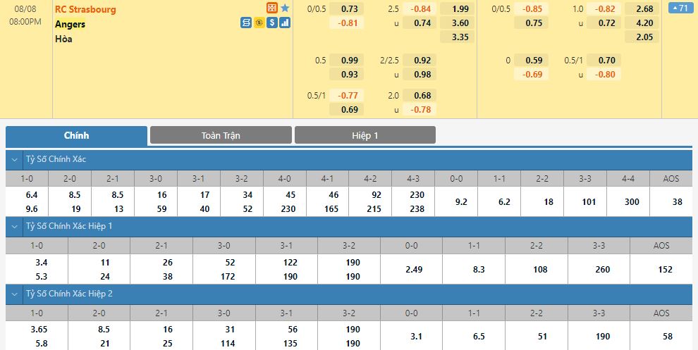 Soi kèo tài xỉu, kèo tỷ số RC Strasbourg vs Angers SCO