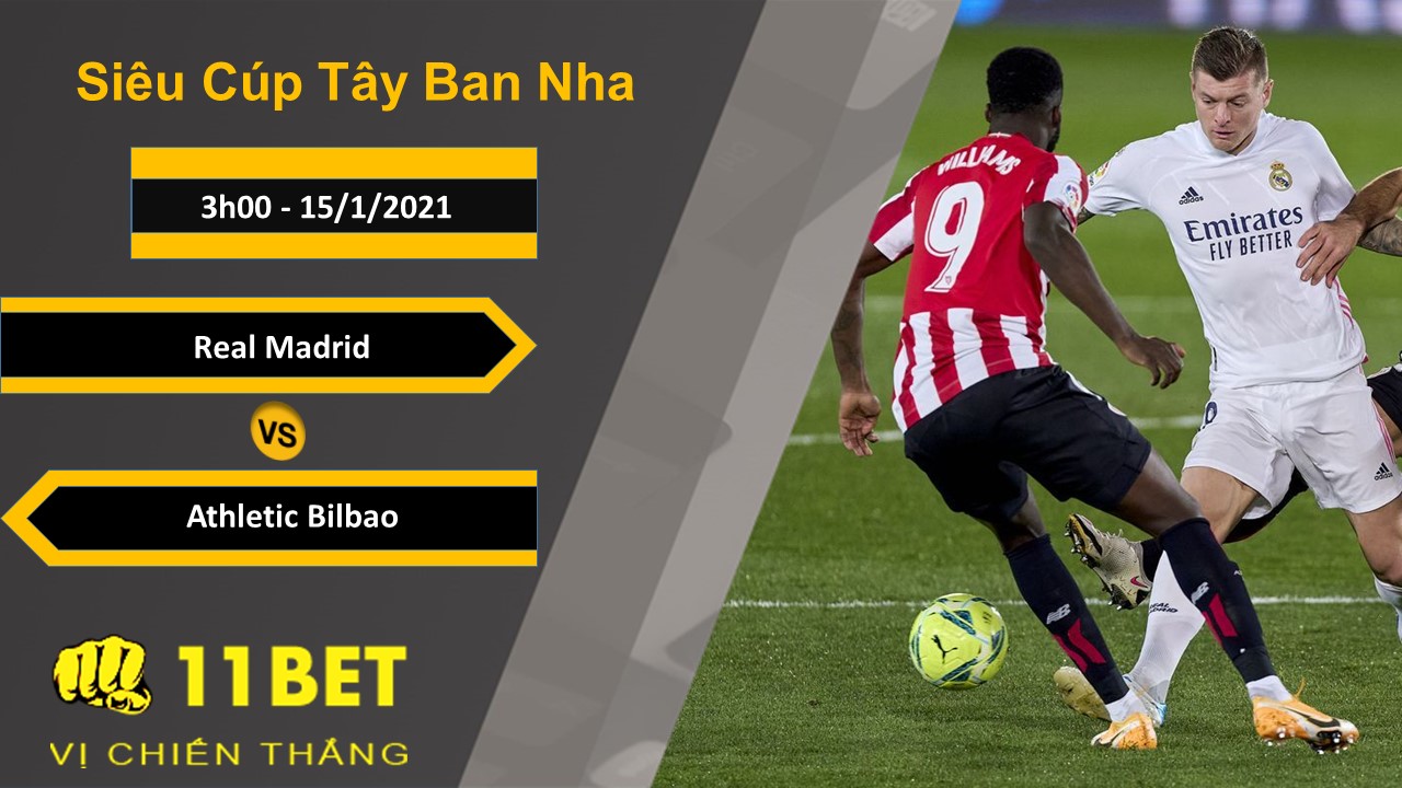 Real Madrid vs Athletic Bilbao – Soi kèo bóng đá hôm nay lúc 3h00 ngày 15/1/2021 – Siêu Cúp Tây Ban Nha