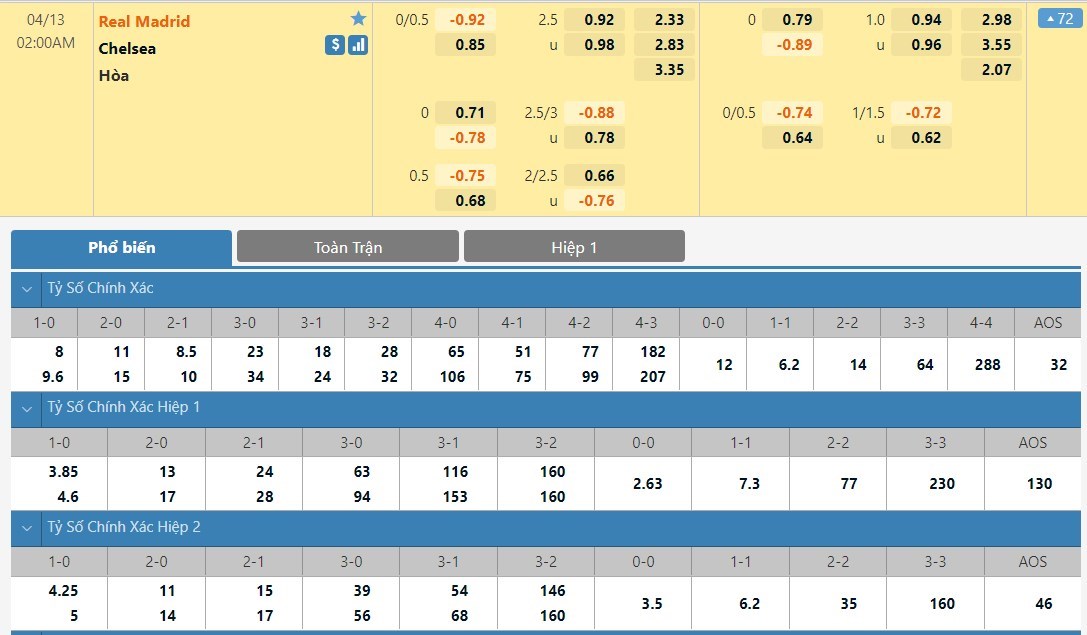 Soi kèo châu Á Real Madrid vs Chelsea