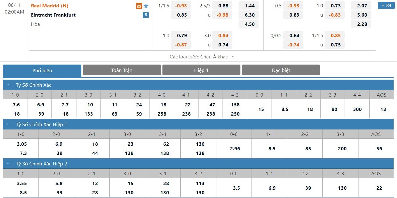 Soi kèo châu Á Real Madrid vs Eintracht Frankfurt