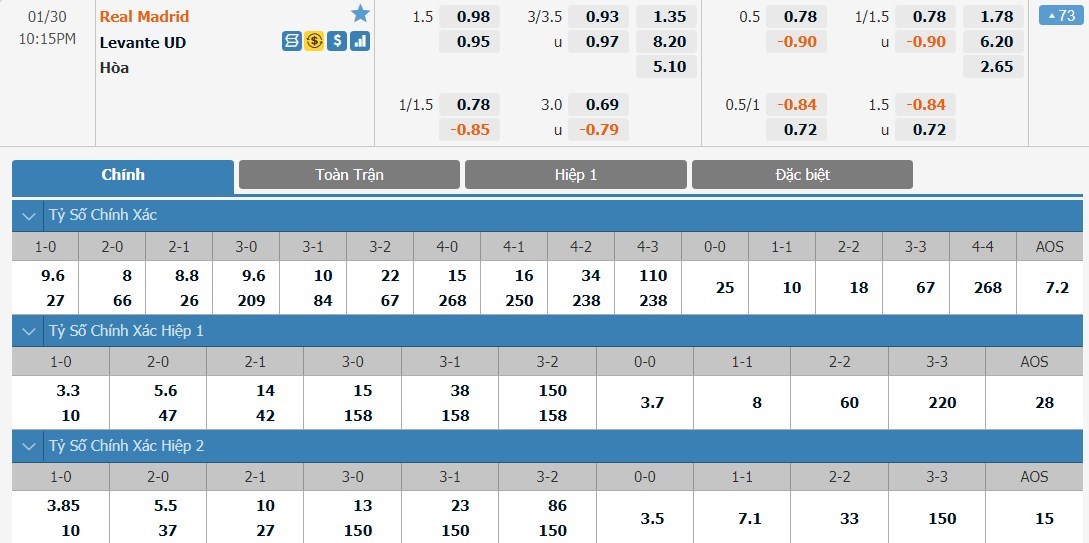 Soi kèo châu Á Real Madrid vs Levante