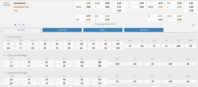 Soi kèo châu Á Real Madrid vs Manchester City