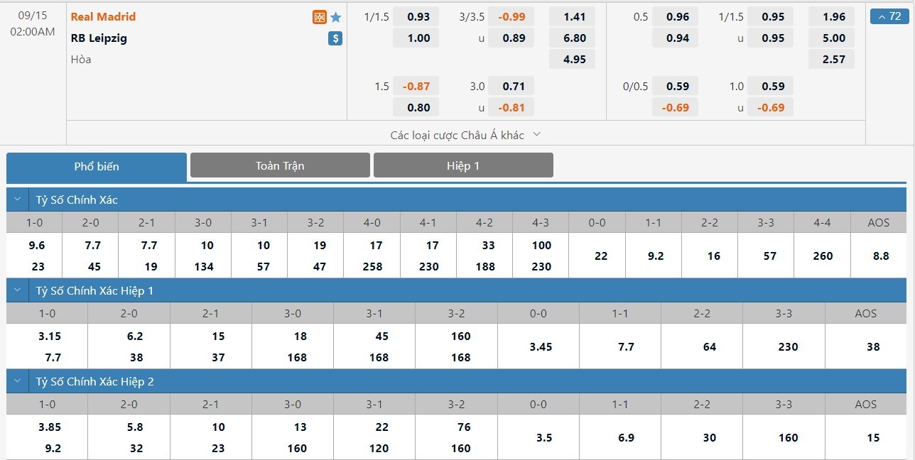 Soi kèo tài xỉu, kèo tỷ số Real Madrid vs RB Leipzig