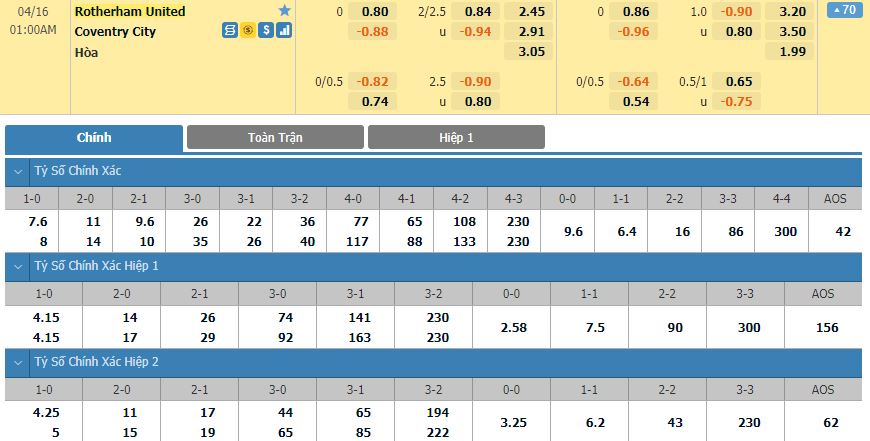 Soi kèo tổng quát Rotherham United vs Coventry City