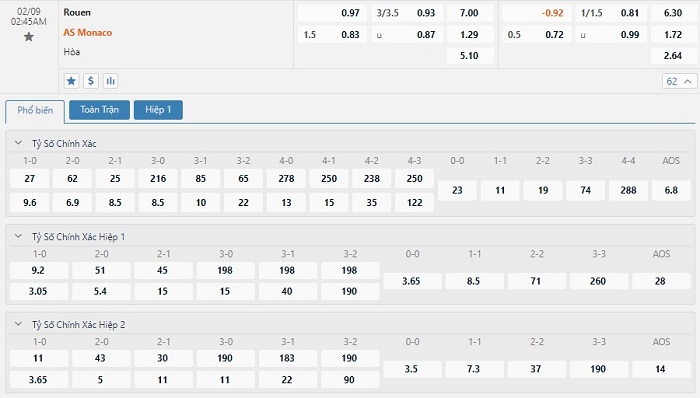 Soi kèo châu Á Rouen vs AS Monaco