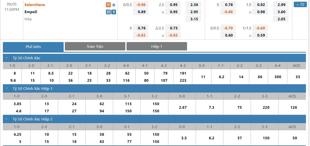 Soi kèo tài xỉu, kèo tỷ số Salernitana vs Empoli