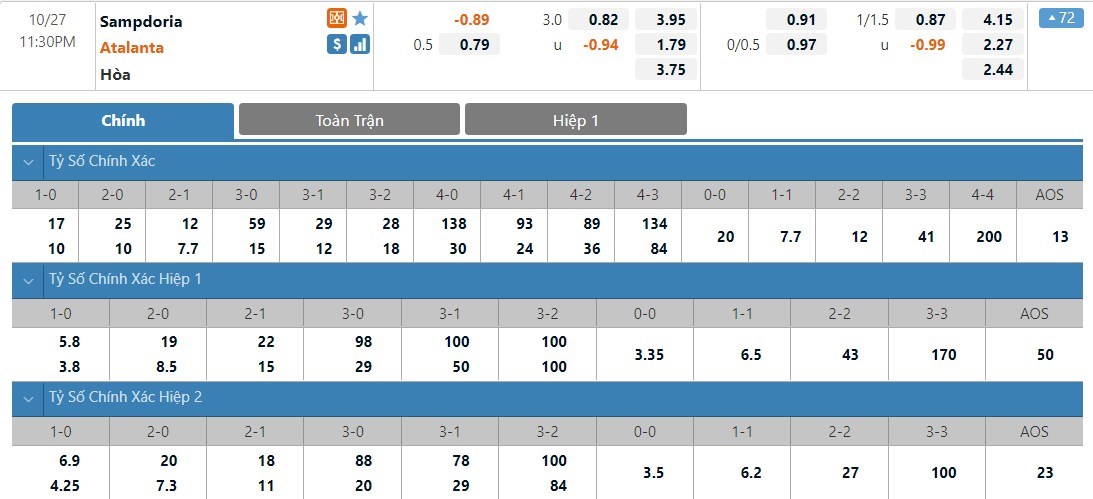 Soi kèo tổng quát Sampdoria vs Atalanta