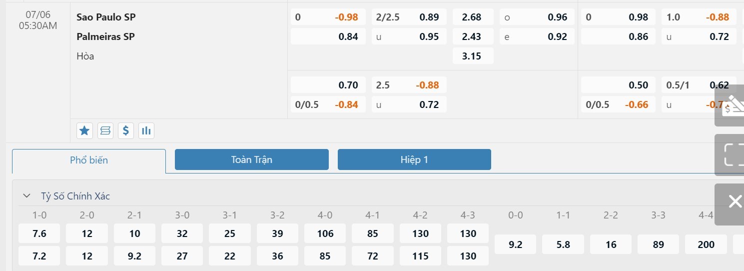 Soi kèo châu Á Sao Paulo vs Palmeiras