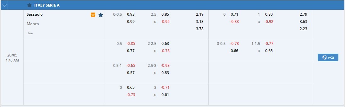 Dự đoán kèo tỷ số hiệp 1: Sassuolo 1-1 Monza