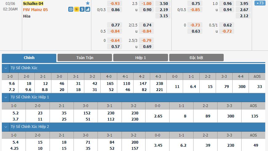 Dự đoán kèo tỷ số hiệp 1: Schalke 04 0-1 Mainz 05