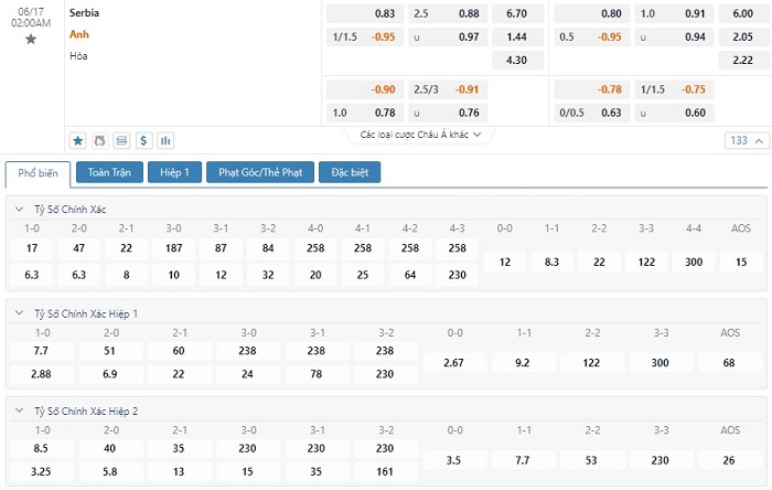 Soi kèo châu Á Serbia vs Anh