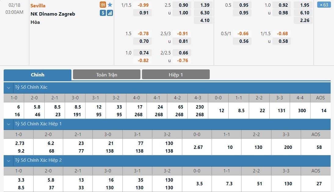 Soi kèo Sevilla vs Dinamo Zagreb, 3h00, 18/2/2022