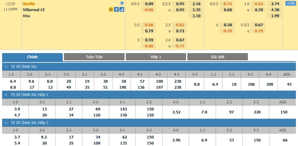 Soi kèo châu Á Sevilla vs Villarreal